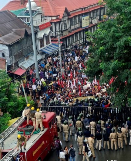 The protest, led by CPI(M) leader and former legislator Rakesh Singha, Dr. Kuldeep Singh Tanwar (President, Himachal Kisan Sabha), and Sanjay Chauhan (former Shimla Mayor), saw hundreds of farmers braving the monsoon to demand an immediate halt to the sealing of homes and cutting of apple trees on disputed forest land.