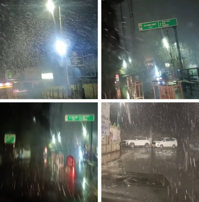 The snowfall followed strong winds during the night, after which snow and rain set in across much of the upper and mid-hill regions.